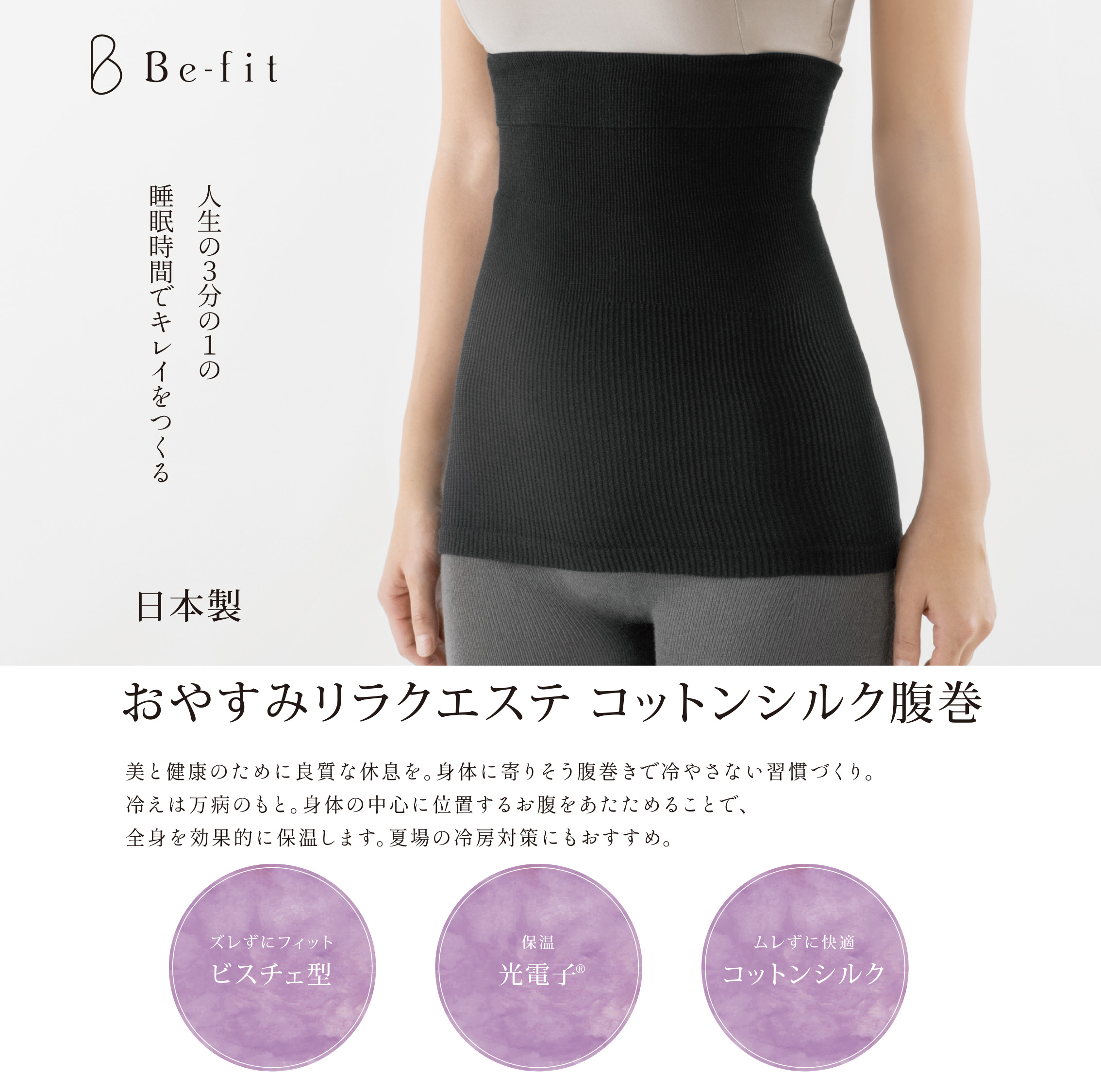 人生の3分の1の睡眠時間でキレイをつくる 美と健康のために良質な休息を。身体に寄りそう腹巻きで冷やさない習慣づくり。 冷えは万病のもと。身体の中心に位置するお腹をあたためることで、 全身を効果的に保温します。夏場の冷房対策にもおすすめ。